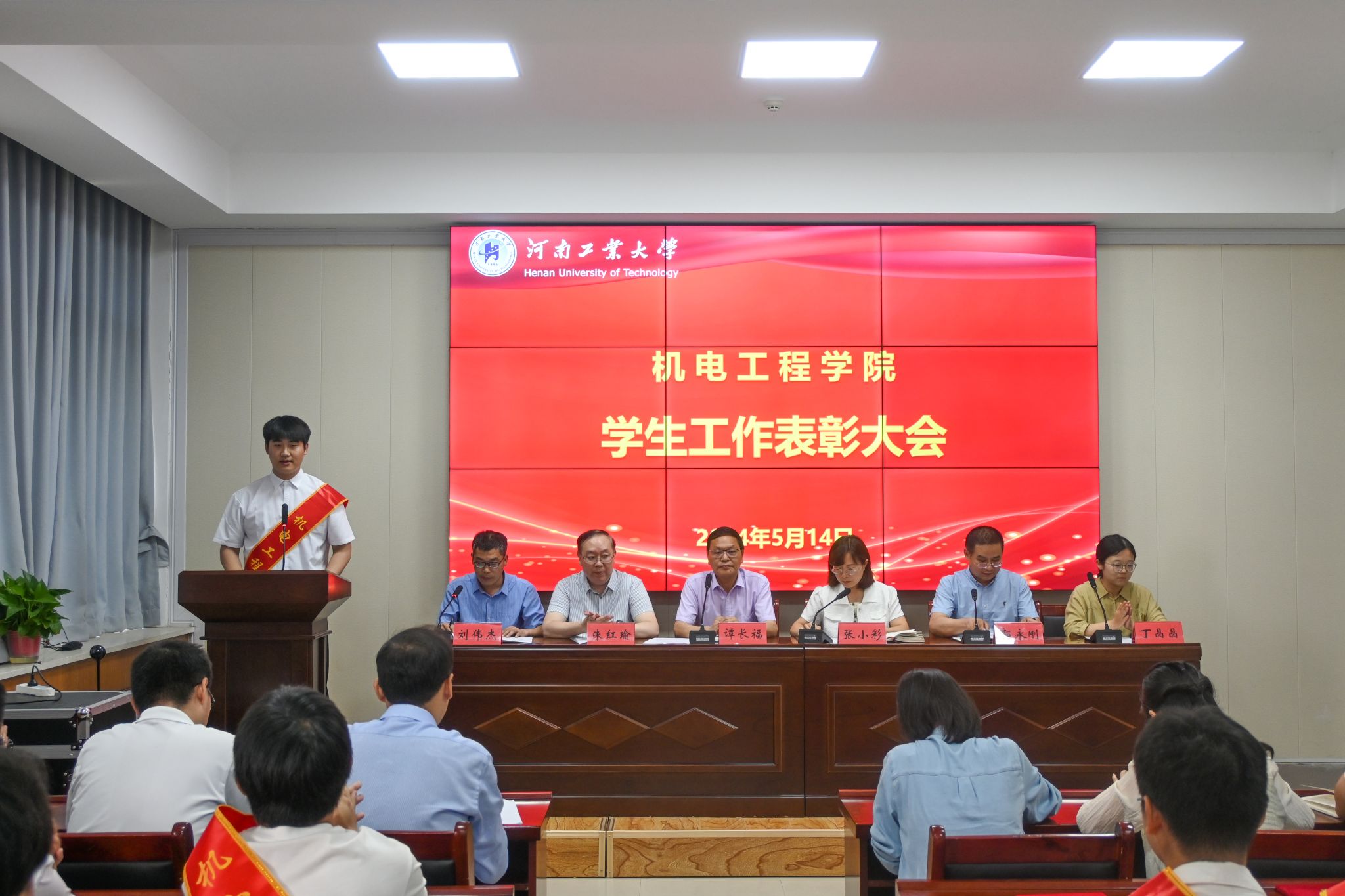 召开2024年学生工作表彰大会,院党委书记谭长福,党委副书记张小彩,副院长朱红瑜、郭永刚和全体辅导员及学生代表150余人参加了此次,会议由学工办主任刘伟杰主持。
