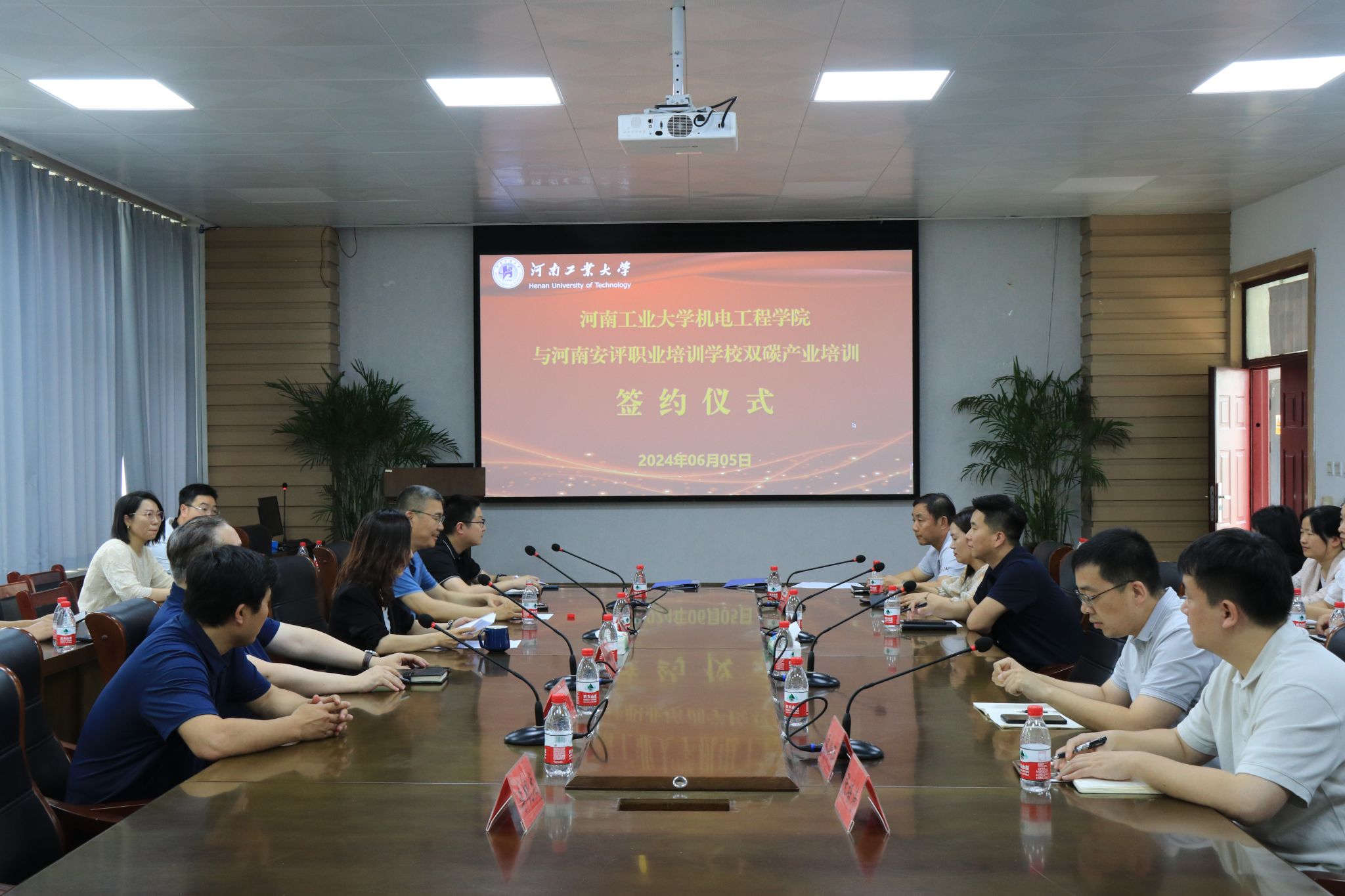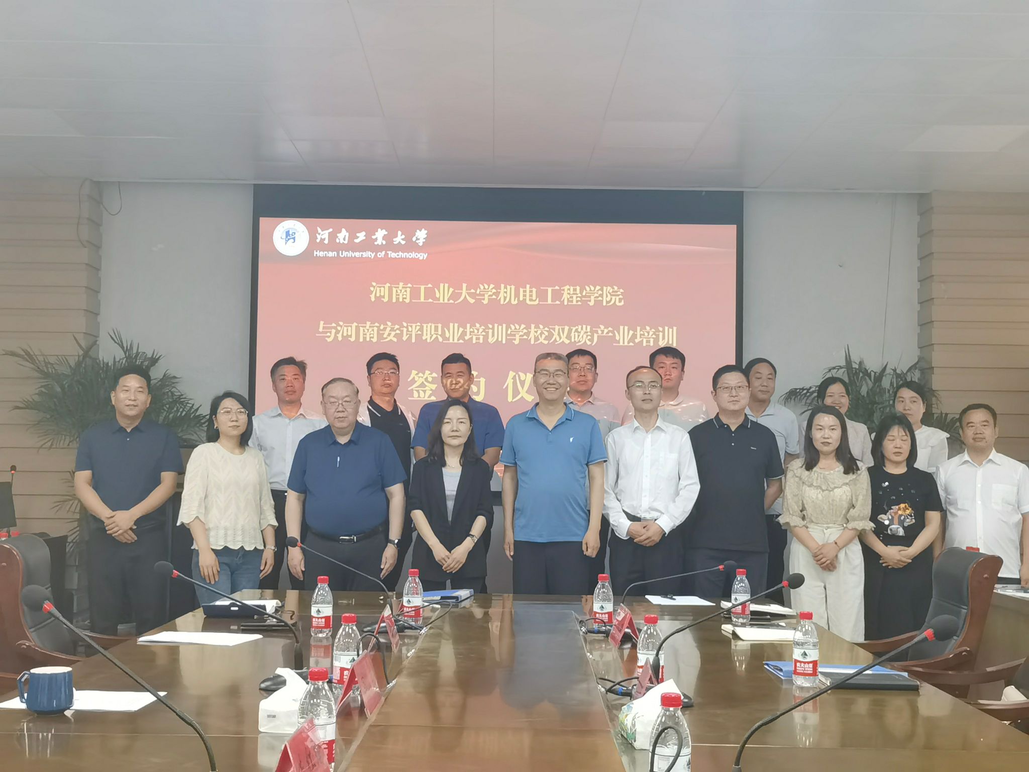 与河南安评职业培训学校双碳产业签约仪式暨推介会在捷赛厅举行。院长吴兰、副院长朱红瑜、双碳产业技术创新中心特聘专家王民忠、河南安评职业培训学校校长李闯、副校长徐思领、郑州市轻工业协会副秘书长陈奇艺、河南蚂蚁新材料等企业代表出席签约仪式。