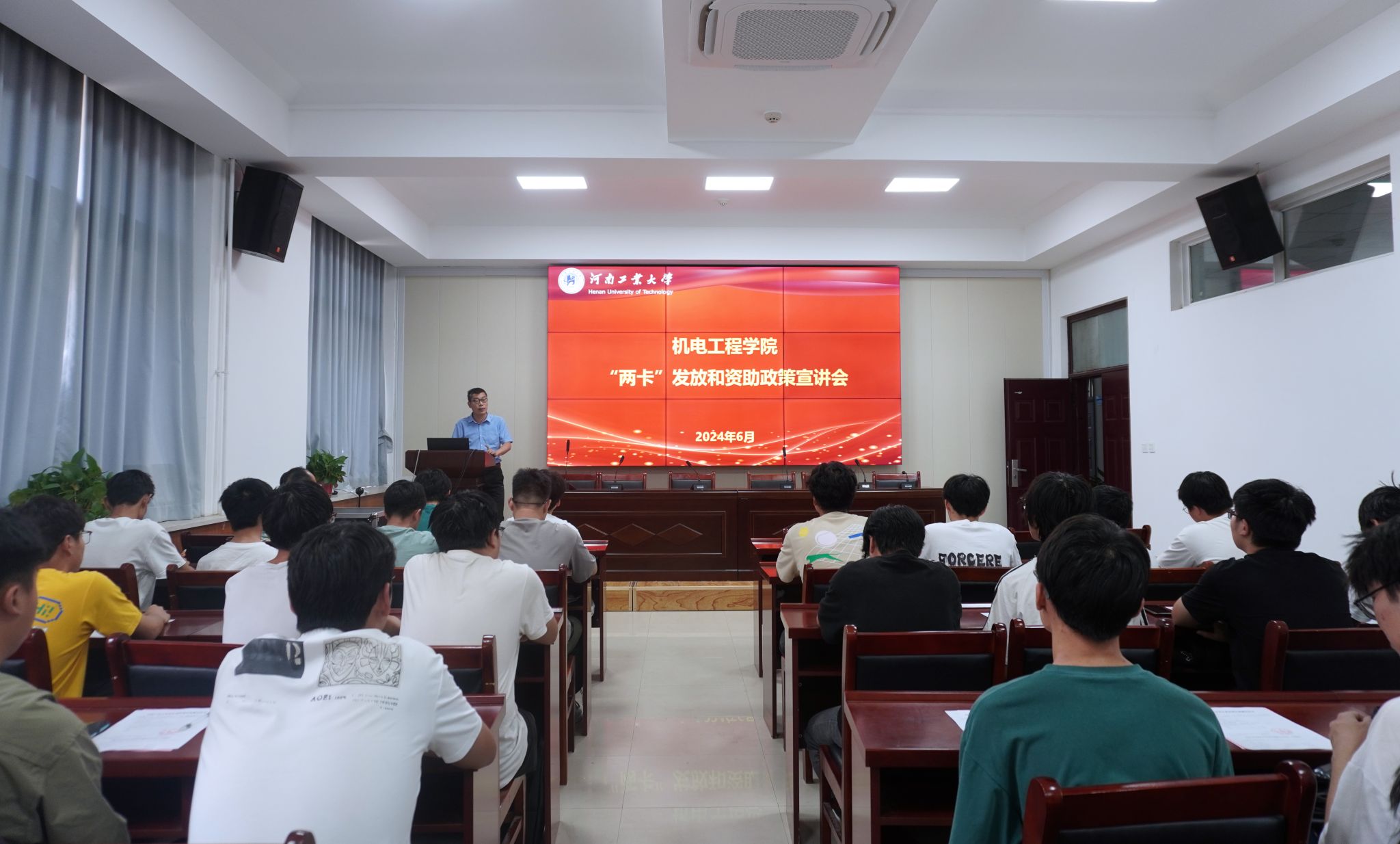 赵琳琳向参会学生详细讲解了“两卡”的具体内容和要求,提醒学生要详细告知家长在校期间的受助情况。同时,对接下来要进行的家庭经济困难认定、国家助学贷款和奖助学金等资助政策进行了广泛宣传。