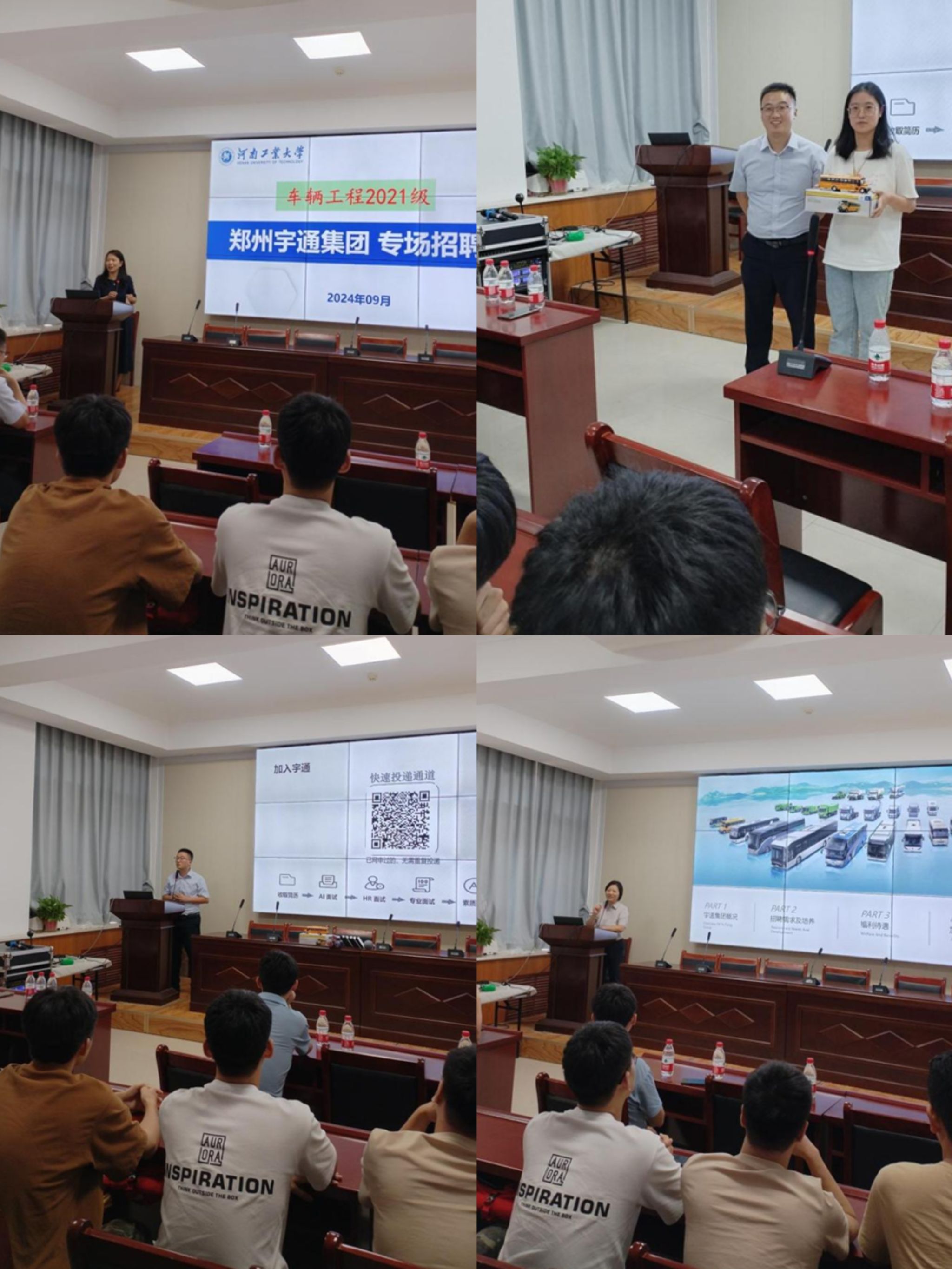 车辆工程专业2025届应届毕业生宇通专场招聘会在7224报告厅顺利举行。宇通集团国内业务链生产人力资源管理科赵洪梅科长、宇通客车国内业务链制件车间申彬主任、宇通客车国内业务链工会主席闫鸿磊等5人参加招聘会。出席会议的还有吃瓜91