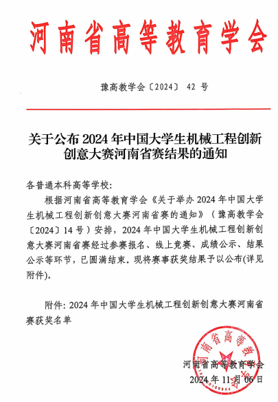 近日,河南省高等教育学会公布2024年中国大学生机械工程创新创意大赛河南省赛结果。吃瓜91