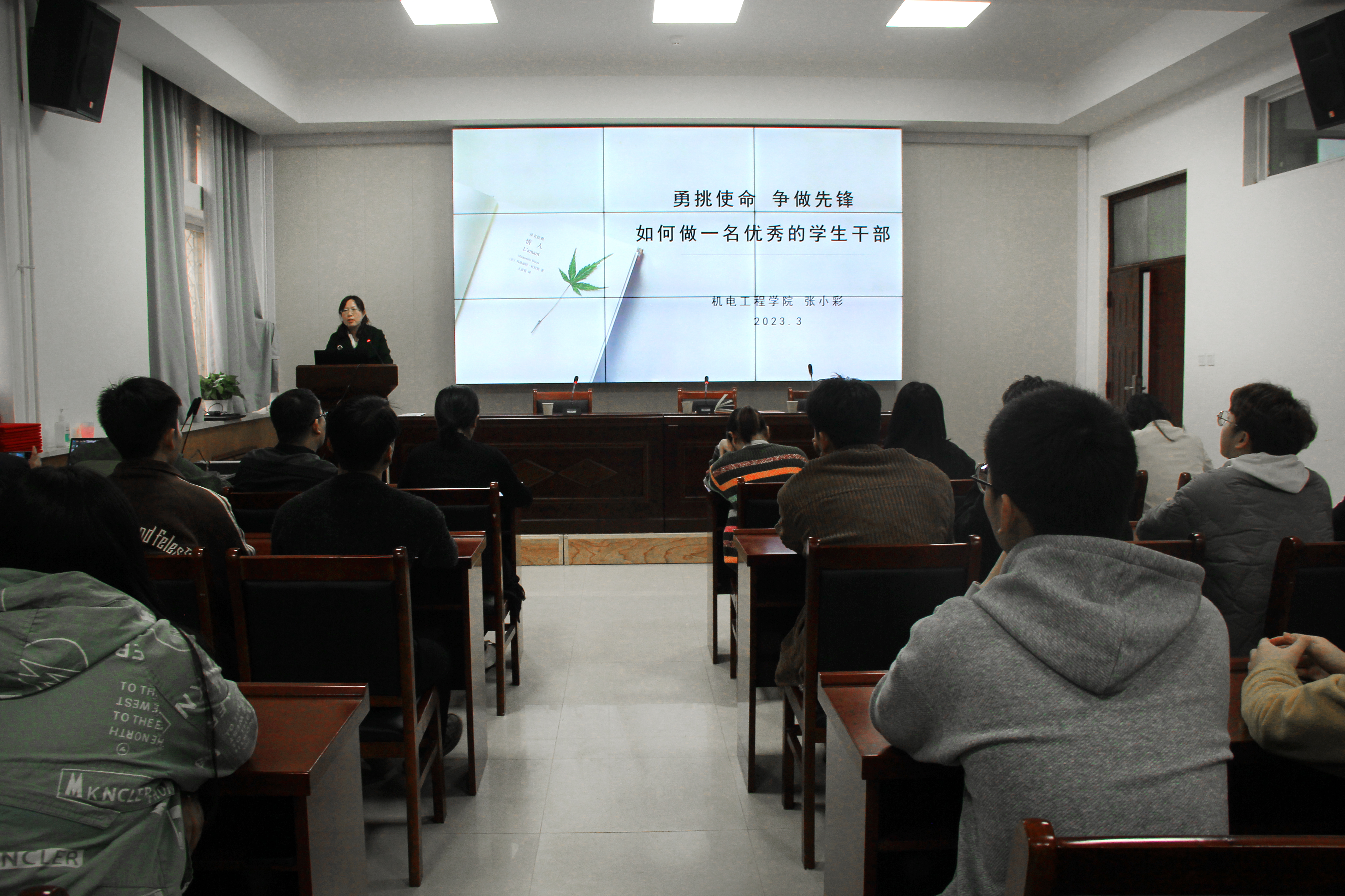 培训会上,张小彩首先对过去一年学院的学生工作进行了总结,并传达了2023年春季学期安全工作会议精神。接着她以《勇挑使命,争做先锋,如何做一名优秀的学生干部》为题,从四个方面对学生干部进行培训:一是学生干部的作用。学生干部要准确定位自己的身份、正确理解自己的职责、清晰认识学生干部的内涵,在学院工作、协助老师、服务学生等方面发挥学生干部的重要作用。二是学生干部的责任。她指出学生干部要以高度的责任心和出色的执行力,在学院的各项工作中真正做到扛旗子、想点子、扑身子、喊号子、争位子和创牌子,在工作实践中不断提升自身的综合素质。三是对学生干部的要求。她强调学生干部务必要坚持加强学习,不断提高自身能力和素养。要坚持甘于奉献,不断提升服务水平。要坚持勇于创新,充分发挥引领示范作用。四是如何做一名优秀的学生干部。结合如何策划活动、准备会议和搞好服务等学生会具体工作,对学生干部开展工作过程的议程设计、公文写作等必备技能进行了培训和指导,并勉励同学们在总结和积累的过程中不断提高自身的综合能力,早日成为一名优秀的学生干部。