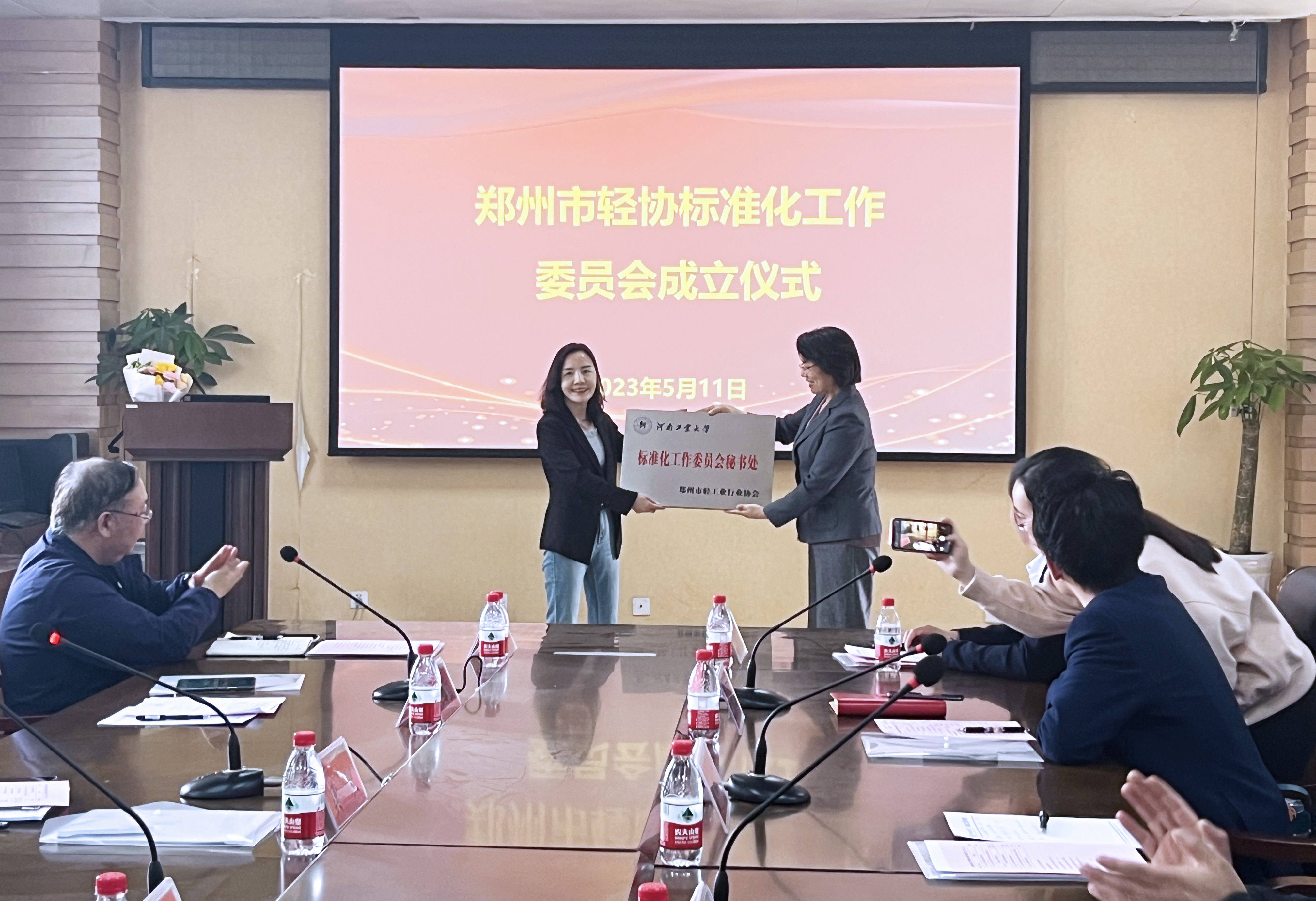 宋瑞萍代表郑州市轻工业行业协会向吴兰授予郑轻协标准化工作委员会秘书处牌匾,颁发郑轻协标准化工作委员会专家委员证书。 同时与会人员还就郑轻协标准化工作委员会成立后的工作内容及方向展开探讨。