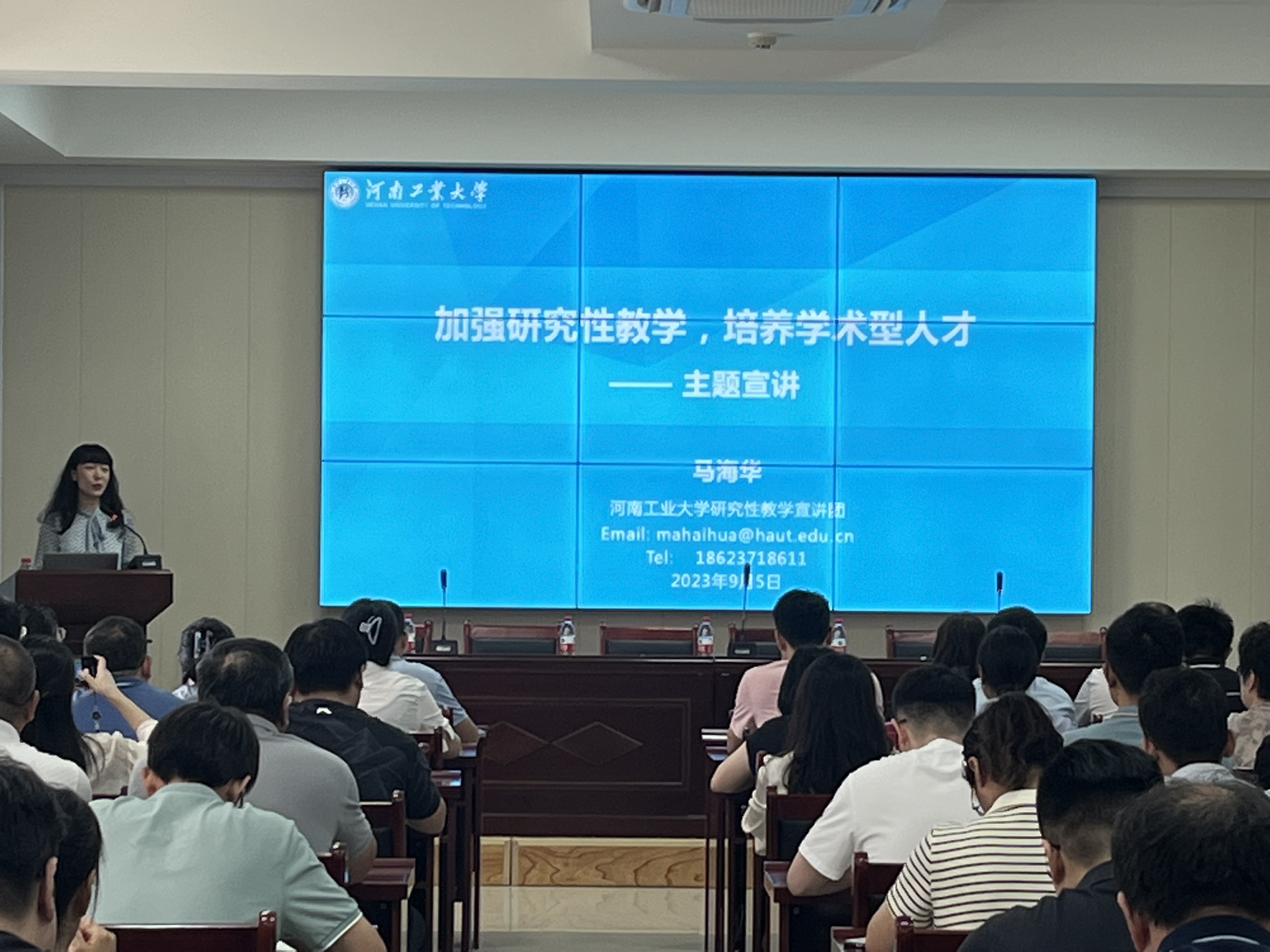 举行“加强研究性教学,培养学术型人才”主题宣讲,会议在捷赛报告厅进行。学校研究性教学宣讲团专家马海华副教授和学院全体教师参加会议。会议由学院副院长郭永刚主持。