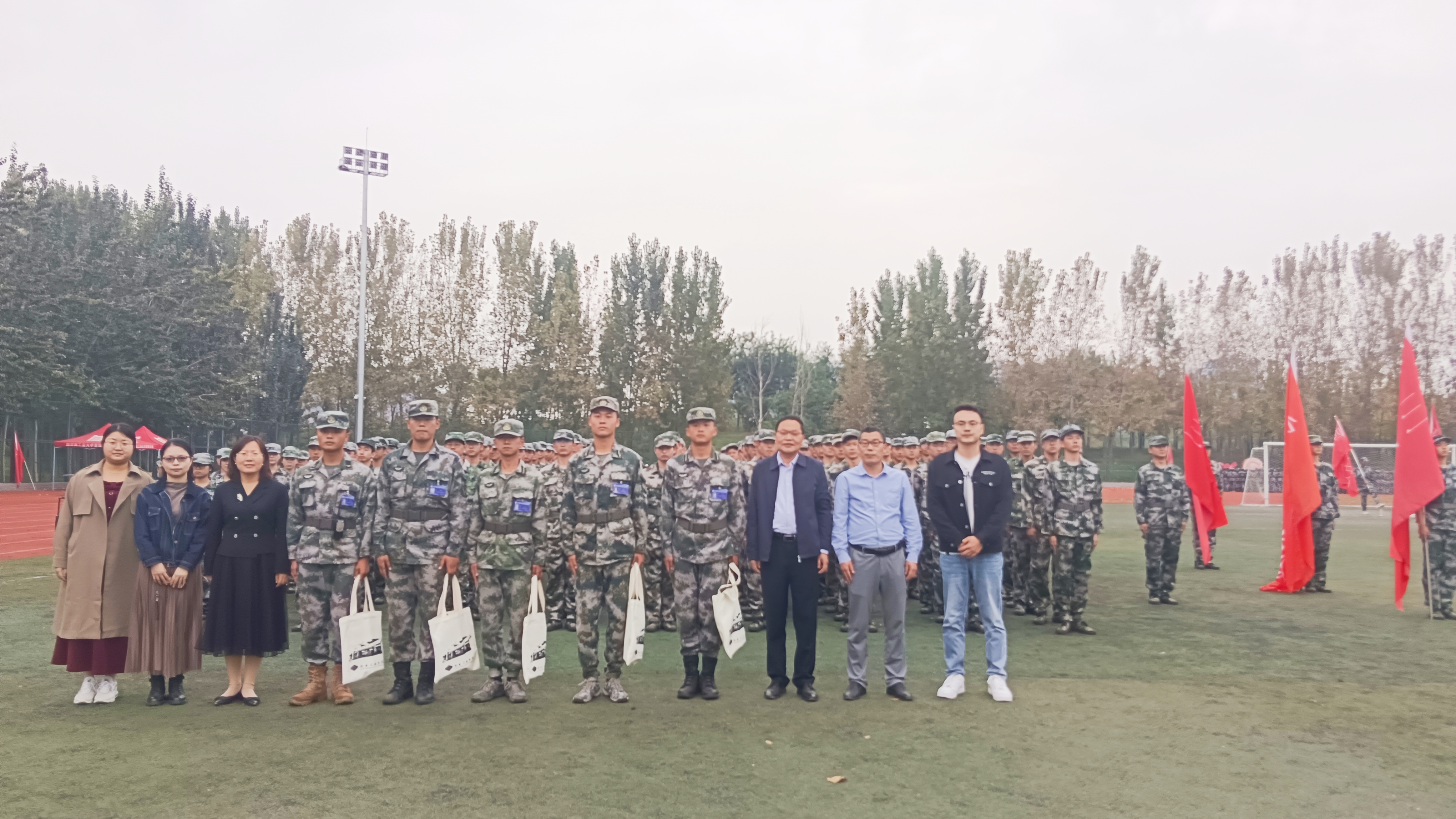 学院领导老师来到队列方阵前,与教官们进行亲切交流,关心并询问每位教官的部队生涯,详细了解军训训练情况,对教官的辛苦付出表示感谢并送上学院慰问品。