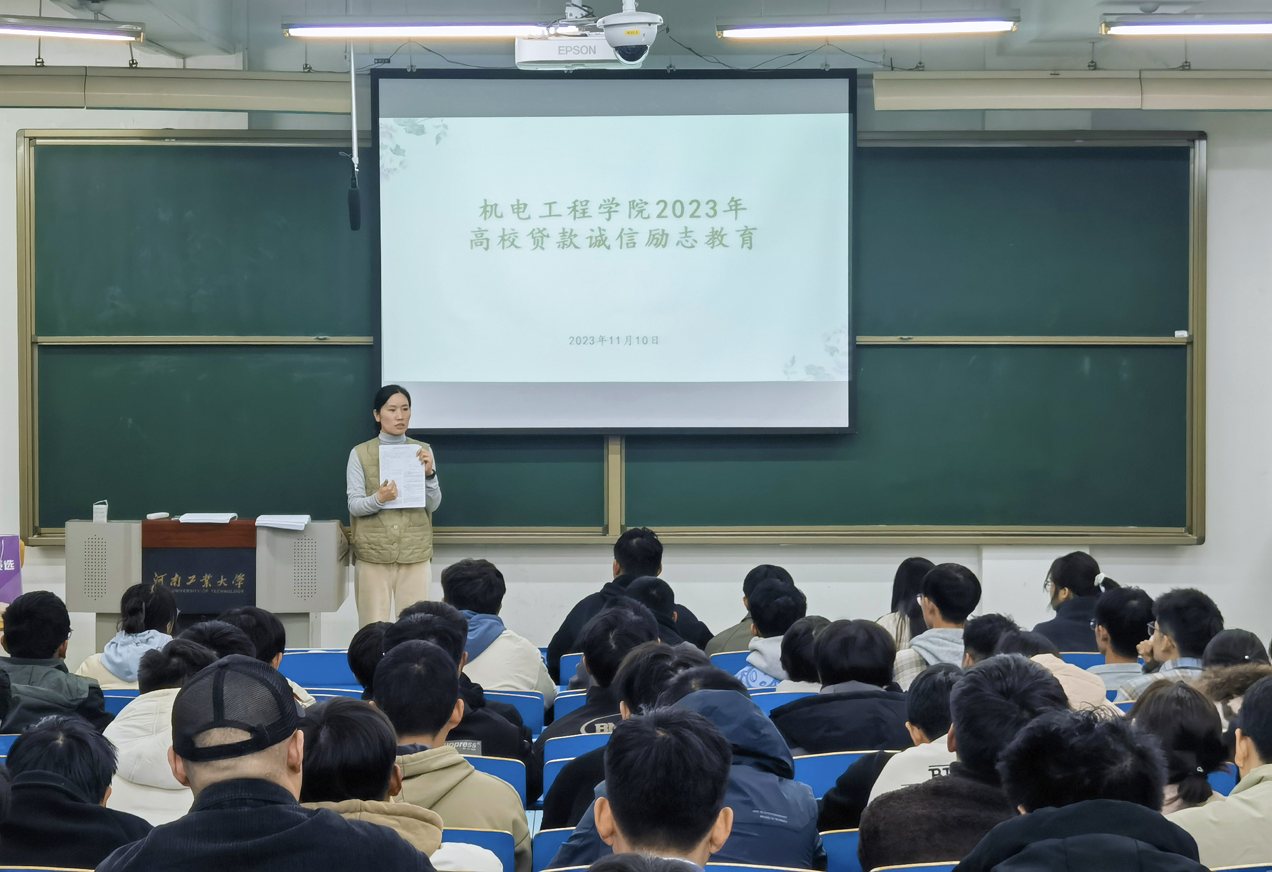 于4121教室举行2023-2024年度高校贷款合同签订会暨诚信教育大会。资助工作负责人赵琳琳、资助助理以及高校贷款学生参加此次会议。