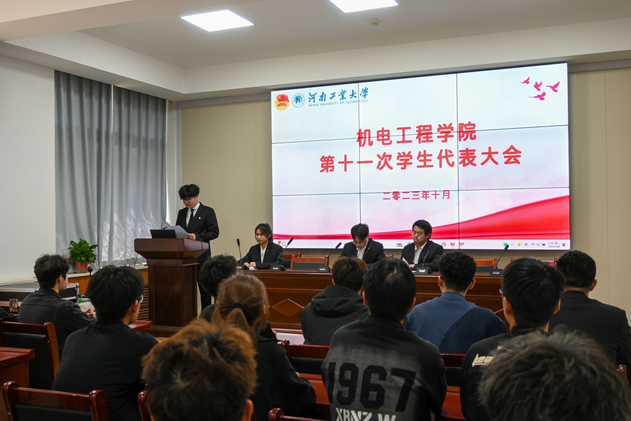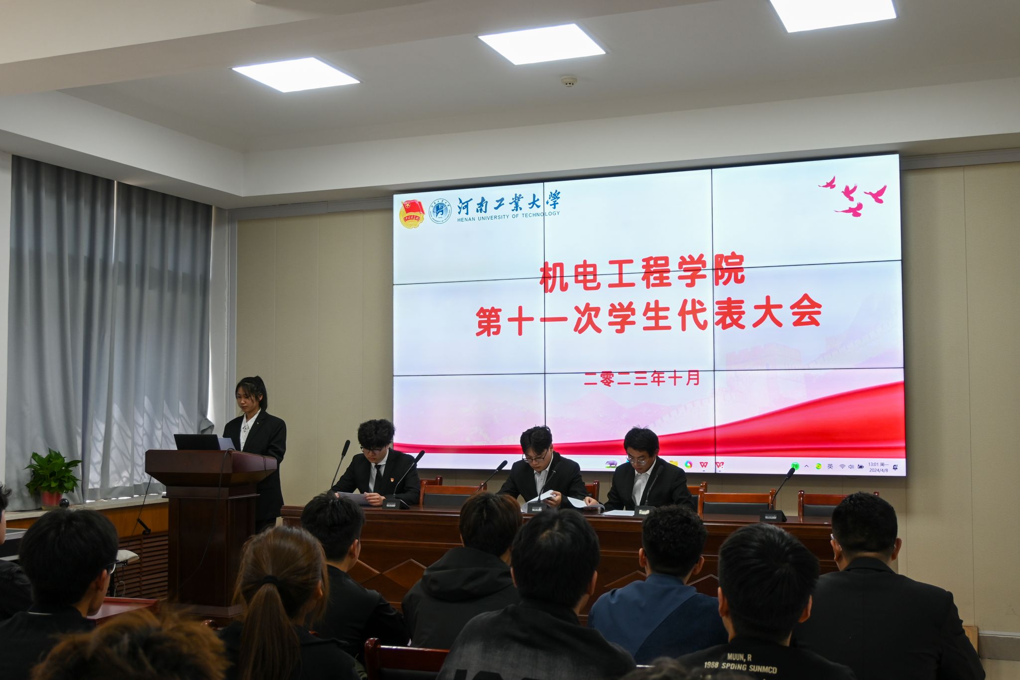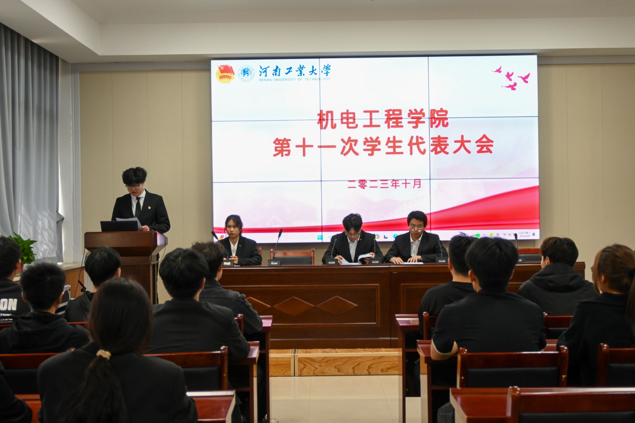 第十一次学生代表大会在捷赛厅召开。院团委、学工办及全体辅导员老师,第十八届、十九届学生会成员及吃瓜91