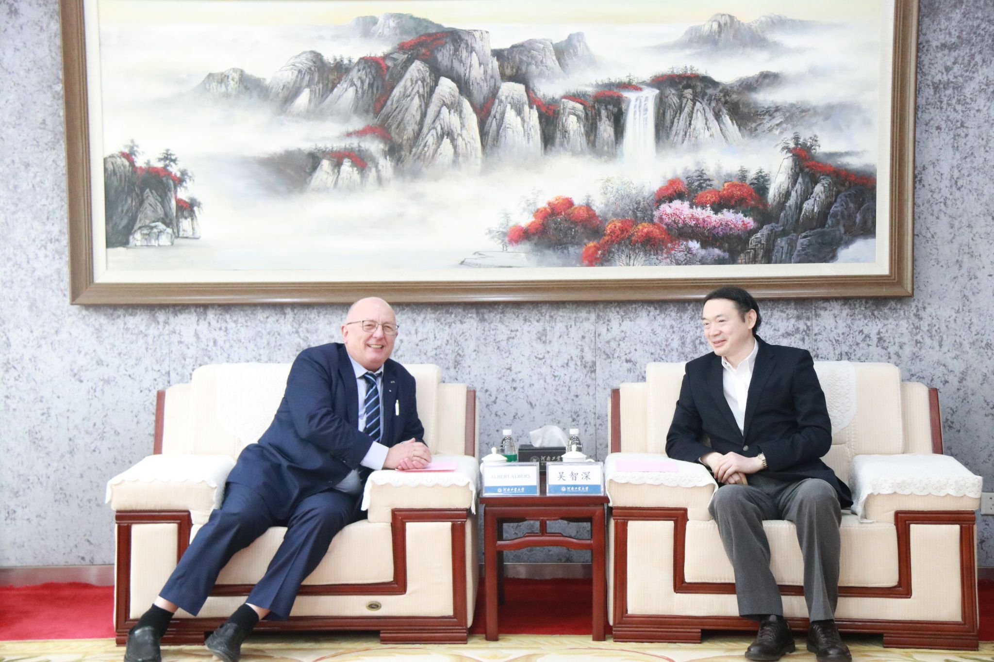 吴智深代表学校向ALBERT ALBERS院士一行人的来访表示热烈欢迎,并简要介绍了学校的办学特色、人才培养和科技创新等情况。ALBERT ALBERS院士对学校的热情接待表示感谢。双方就合作维度与合作路径等展开了热烈讨论,并围绕粮食机械领域进行了深入会谈,下一步希望能够继续发挥各自优势、不断拓展合作交流领域、努力搭建合作科研平台,共同推进合作走深走实。