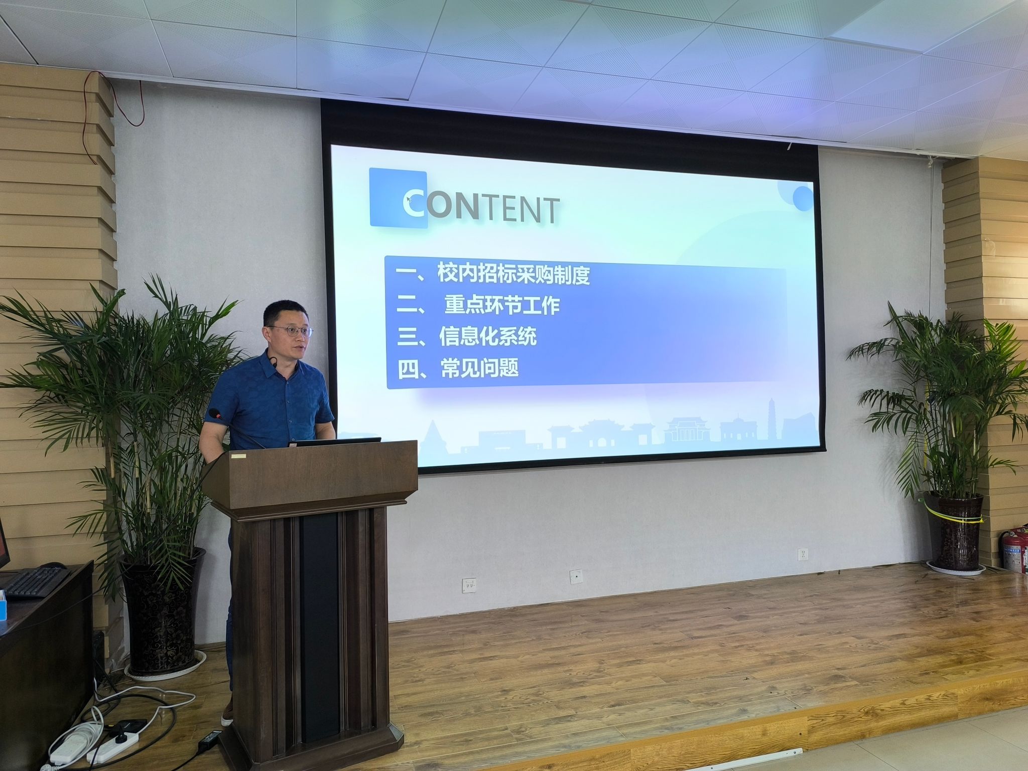 的招标采购制度。他从校内招标采购制度、重点环节工作信息化系统以及常见问题等四个方面进行了全面阐述,使与会人员对学校的招标采购流程有了更加清晰的认识,最后,参会人员围绕招标采购政策、程序、系统操作及后期工作中可能会出现的问题进行了良好互动和深入交流。