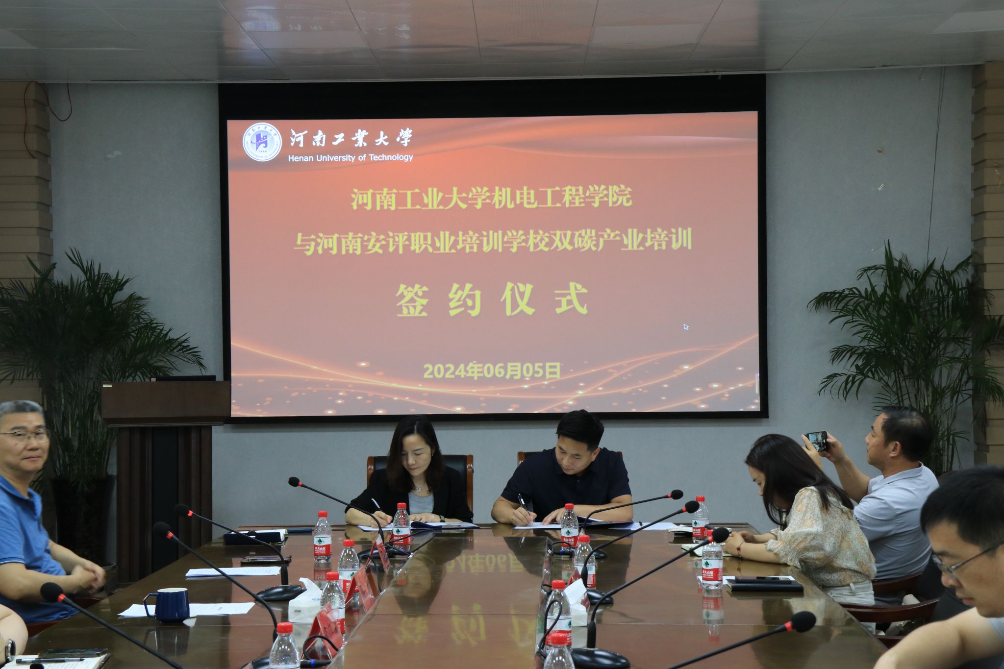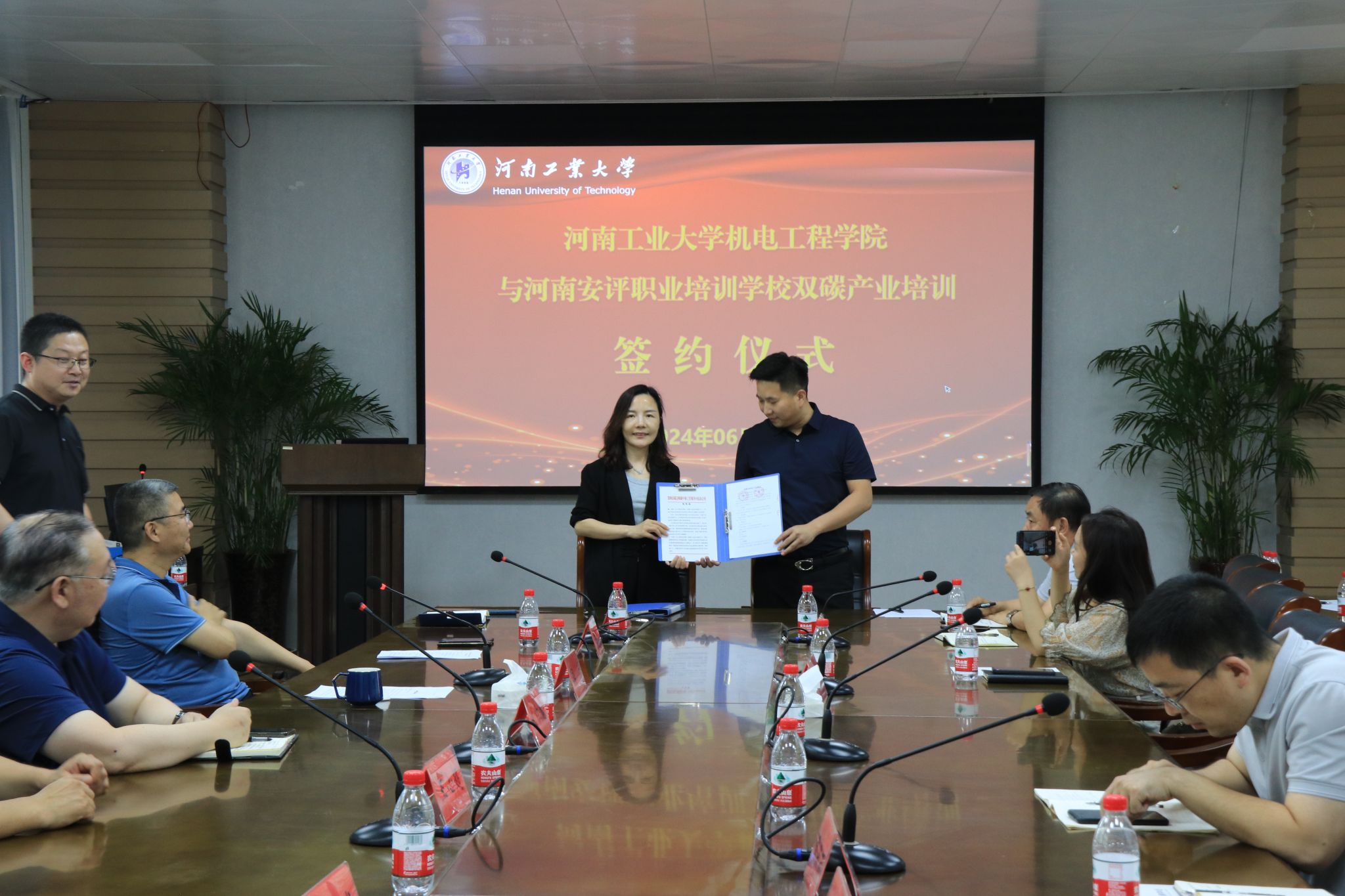 与河南安评职业培训学校双碳产业签约仪式暨推介会在捷赛厅举行。院长吴兰、副院长朱红瑜、双碳产业技术创新中心特聘专家王民忠、河南安评职业培训学校校长李闯、副校长徐思领、郑州市轻工业协会副秘书长陈奇艺、河南蚂蚁新材料等企业代表出席签约仪式。