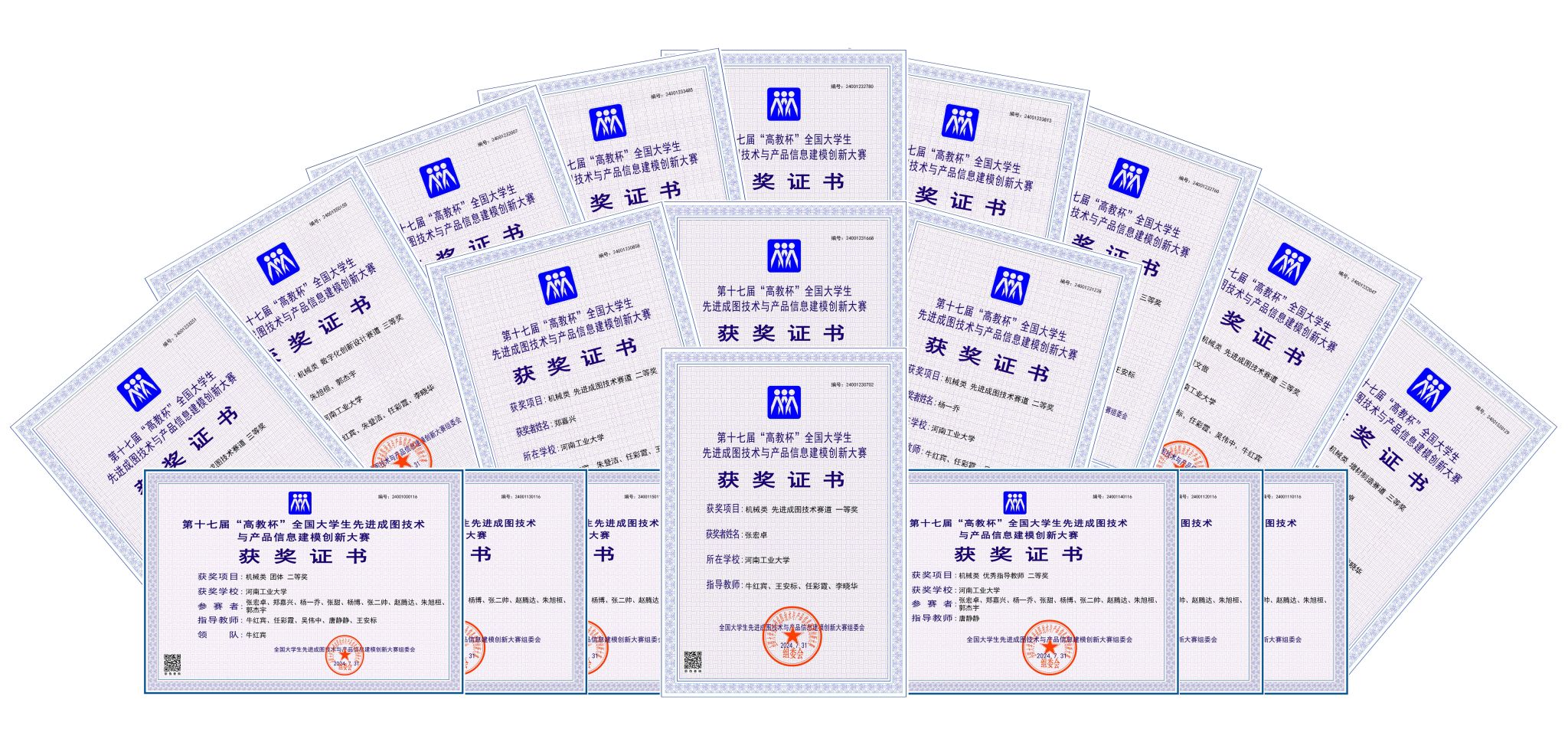 参赛学生在牛红宾、任彩霞等老师的悉心指导下,最终获得机械类先进成图技术赛道一等奖1项、二等奖3项、三等奖7项;机械类数字化创新设计赛道三等奖1项;机械类增材制造赛道三等奖1项;机械类团体二等奖1项。