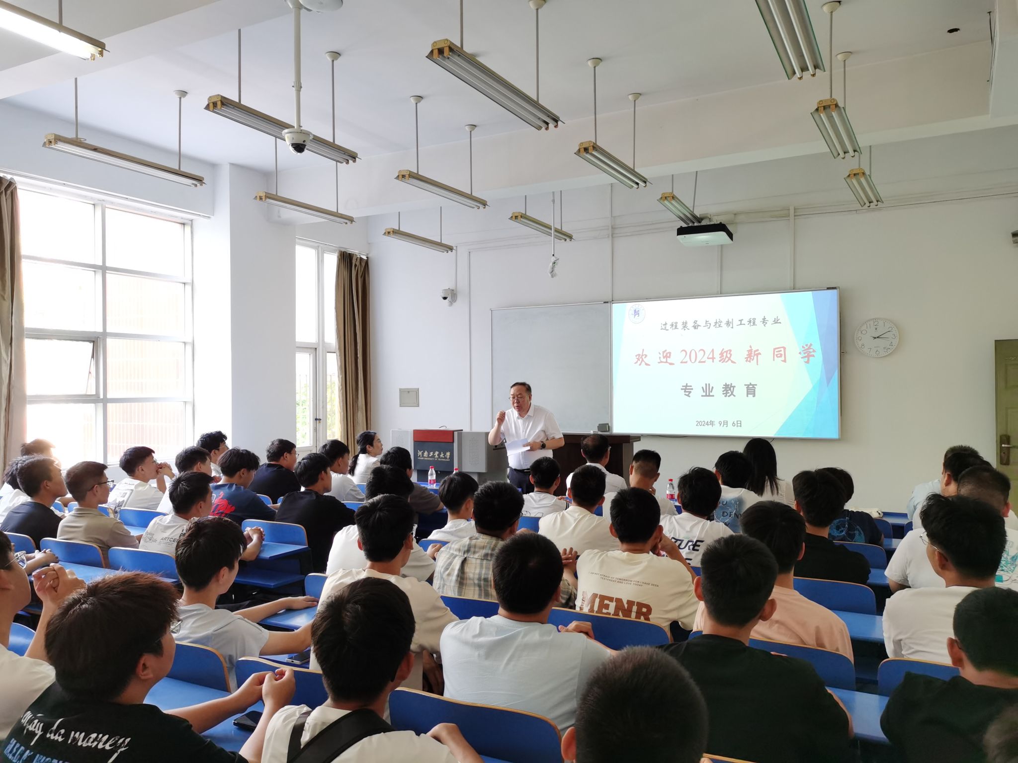 入学教育期间,院长吴兰以《奋进新征程,书写新篇章》为题为2024级新生讲授开学第一课,介绍了学校和学院的发展历程、师资队伍、人才培养、教学科研等情况,并勉励同学们继承和践行工大精神,做更优秀的学习者,成为更好的自己,创造更加美好的明天。