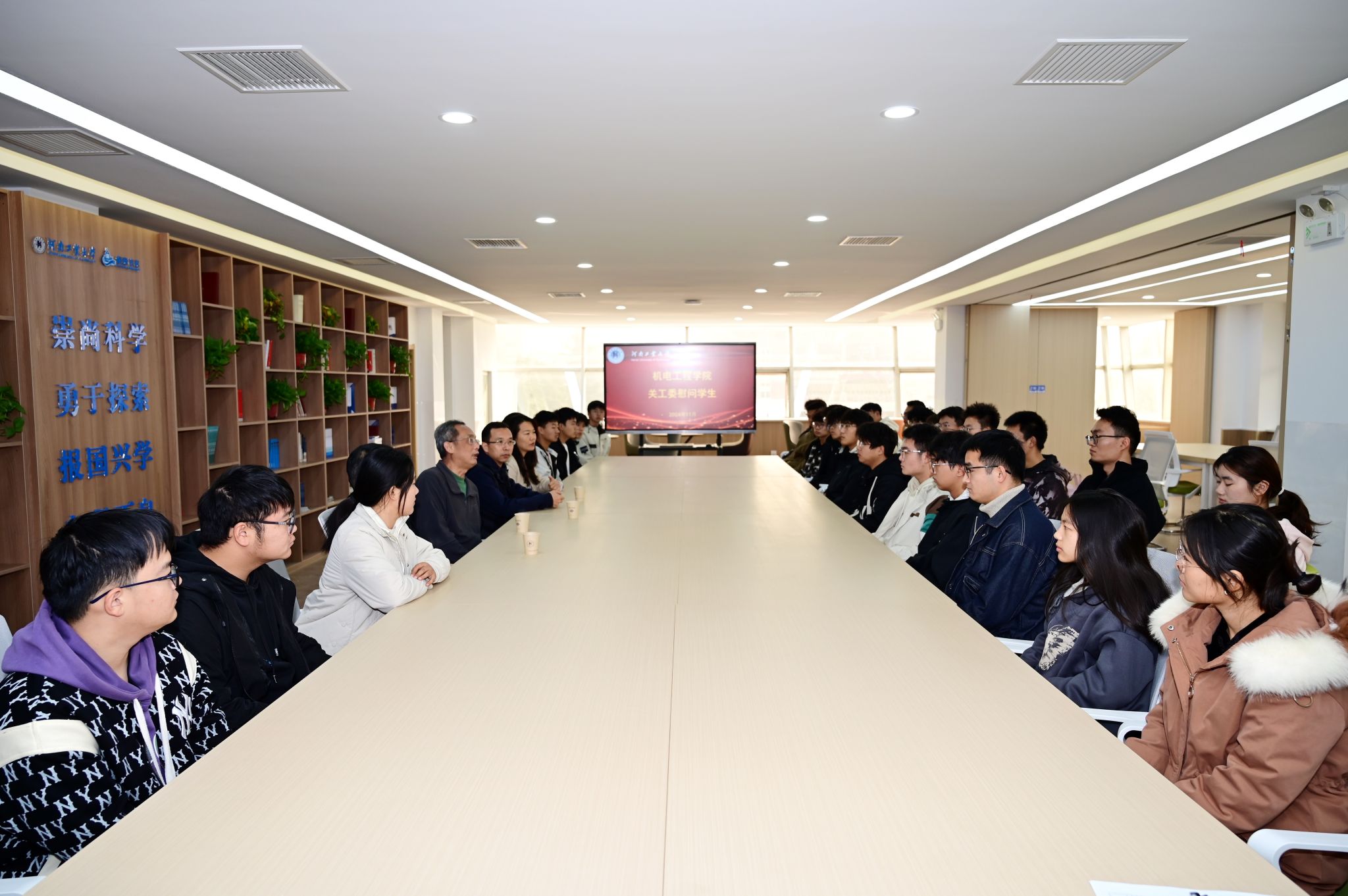 关工委深入德园“一站式”社区慰问学生。学院党委书记、关工委主任魏涛,关工委副主任沙杰,党委副书记、关工委副主任张东霞,关工委秘书长刘伟杰和来自学院不同学历层次、不同专业的40余名学生参加本次活动。
