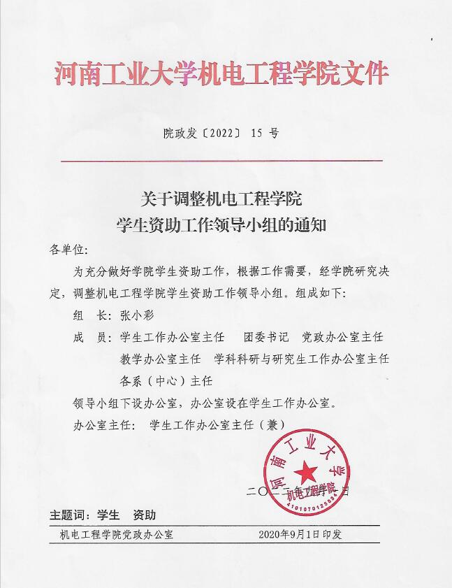 关于调整吃瓜91 学生资助工作领导小组的通知