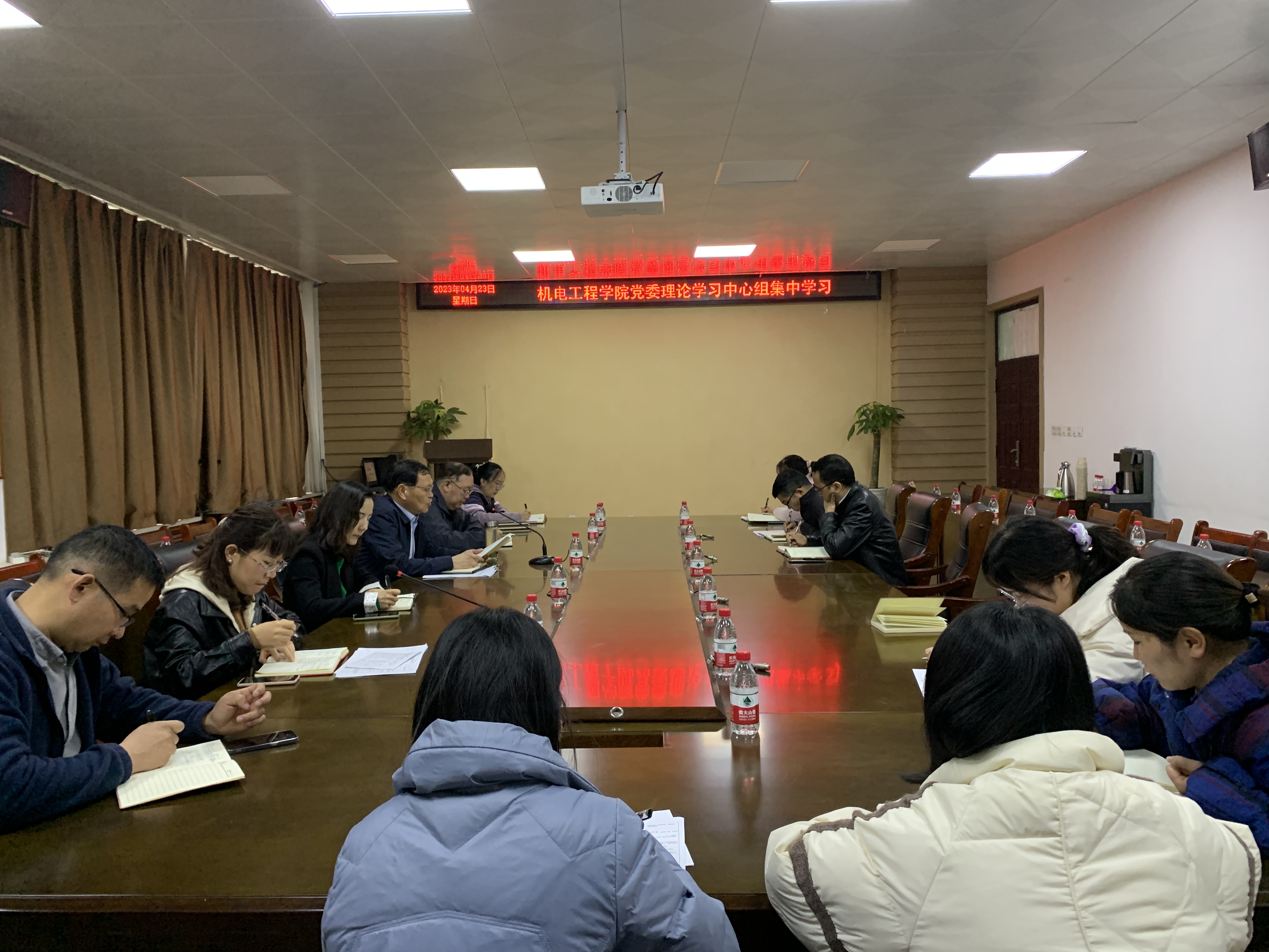 4月23日上午,吃瓜91 党委理论学习中心组在7244会议室举行了学习贯彻习近平新时代中国特色社会主义思想主题教育集中学习研讨会。学院全体领导班子、党委委员参加了学习,会议由院党委书记谭长福主持。