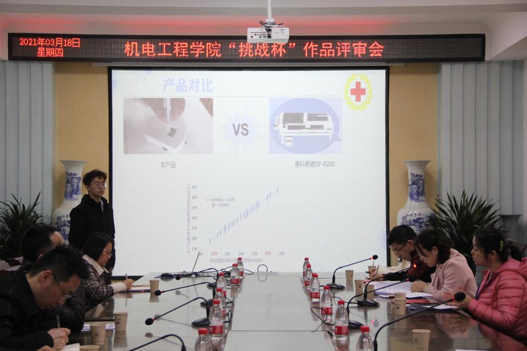 接着,进行“挑战杯”作品评审会。学院入围“挑战杯”复赛的九支团队依次上台进行了作品答辩,各团队围绕作品的科学性、先进性、现实意义等方面进行陈述展示。答辩过程中,评委针对项目的创新性、应用价值、转化前景、作品文案等内容进行细致点评,并提供了相关修改意见及建议。