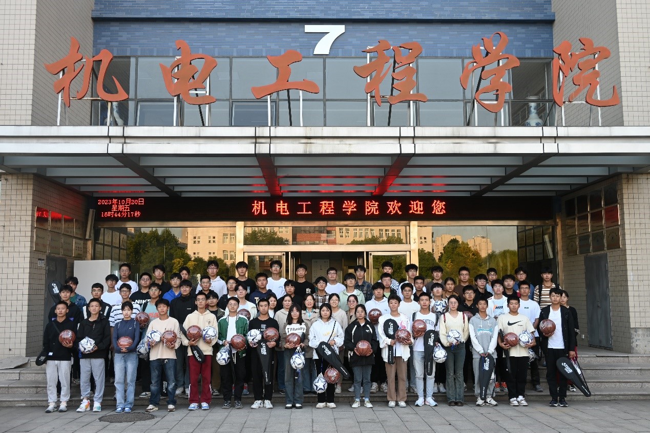 最后,全体参会老师向2023级各班逐一发放了篮球、足球、羽毛球、跳绳等体育用品并合影留念。