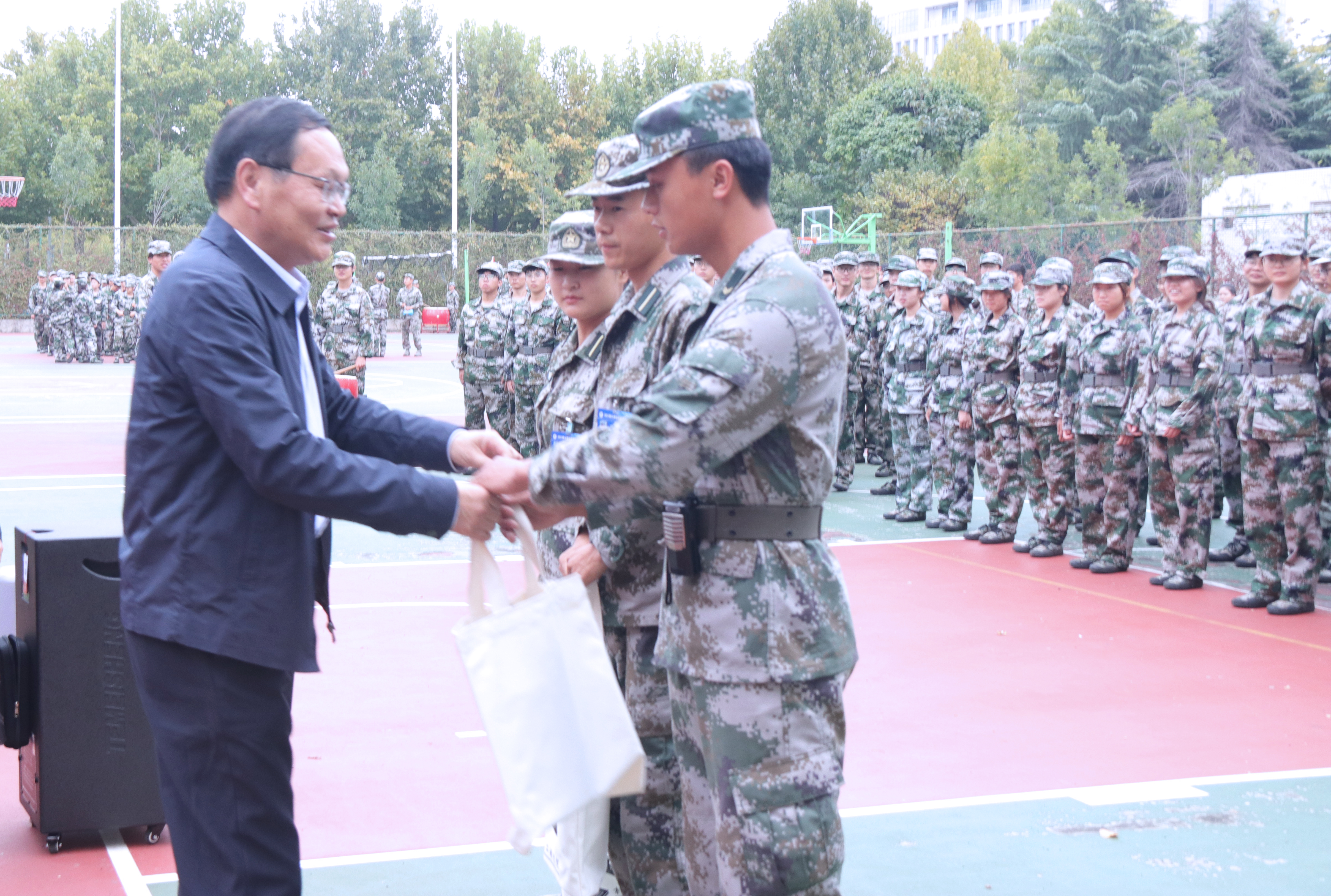党委书记谭长福、副书记张小彩及辅导员一行深入训练场地,看望慰问军训教官及参训学生。