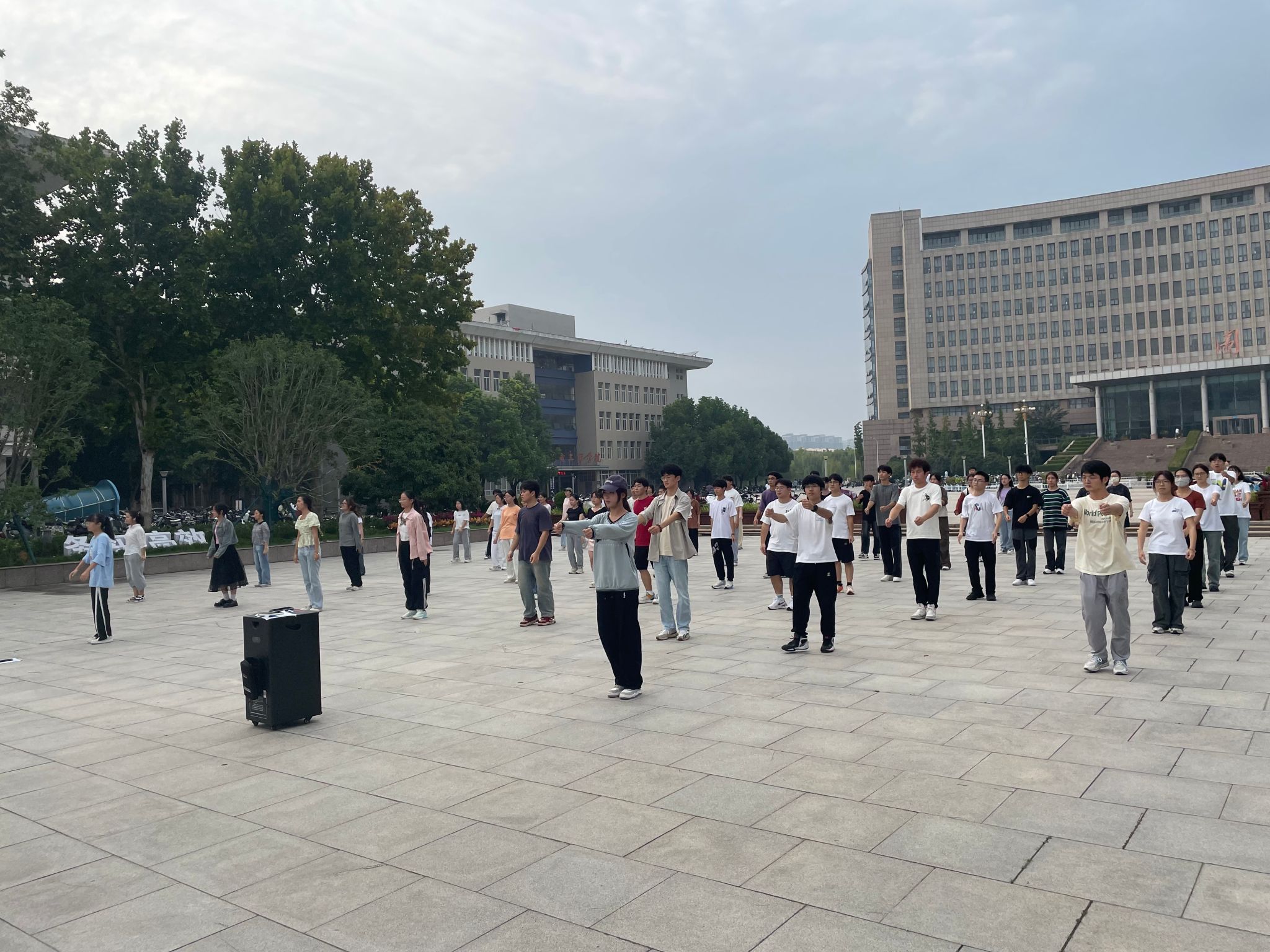 学院2022级、2023级各班同学参与到了此次活动。大家来到下沉广场,从热身运动开始认真进行活动前的拉伸运动。随着第九套全广播体操的音乐响起,在轻松而舒缓的音律中,同学们昂首挺胸,伸臂,扩胸、转体、踢腿、弯腰……动作娴熟到位,张弛有度,飞扬着动人的神采。同学们个个精神抖擞,充满朝气和活力,团结一致,处处彰显了学生的青春活力,飞扬激情!